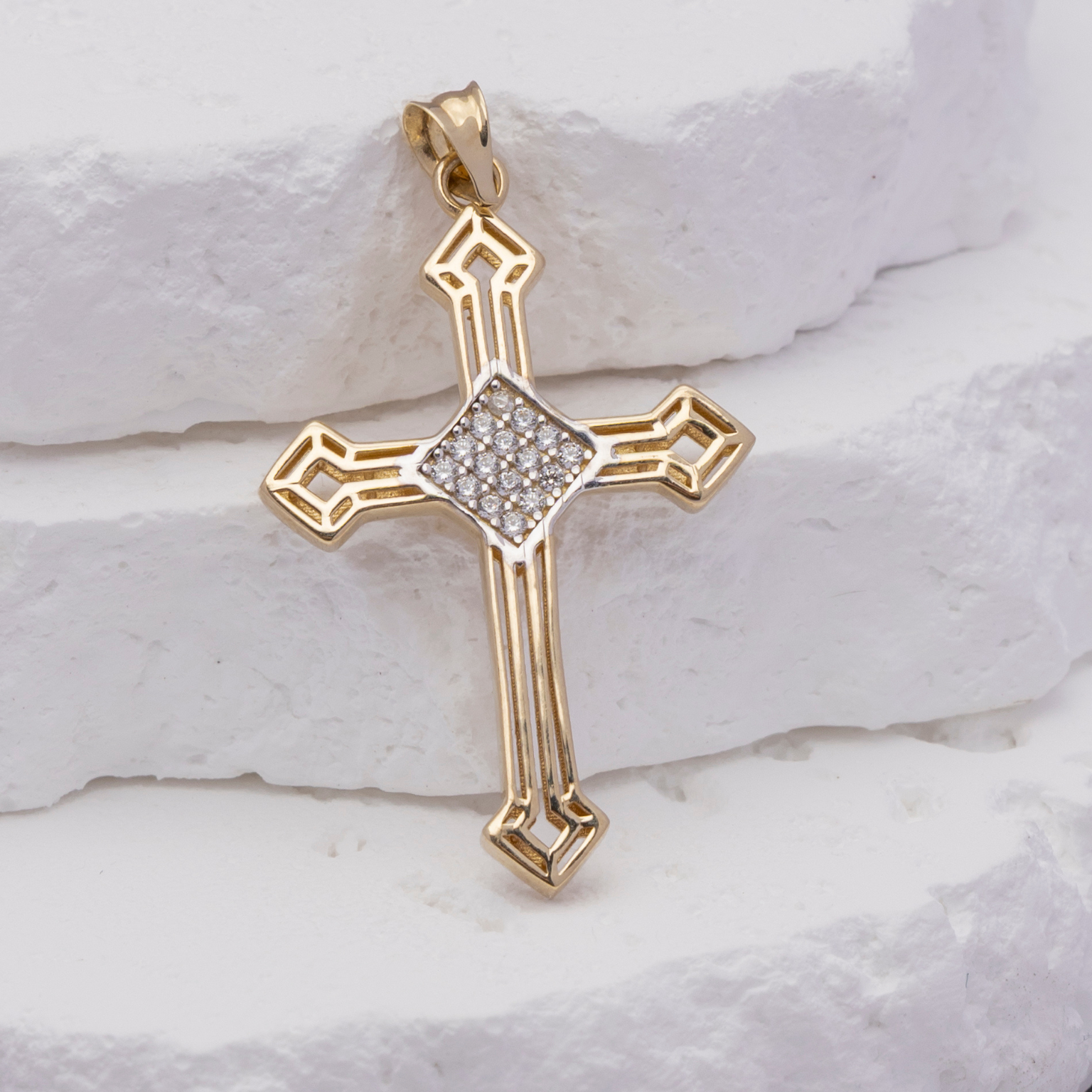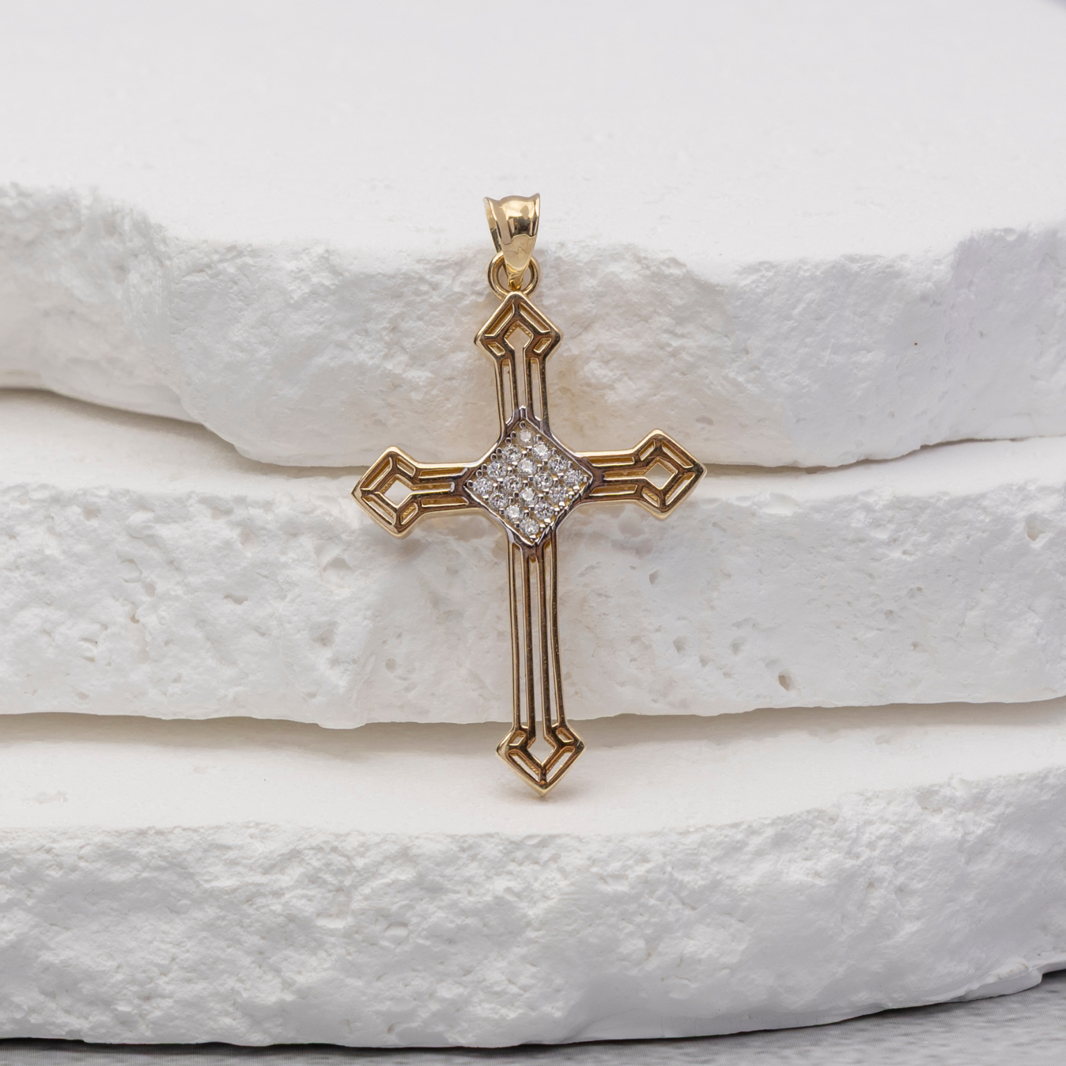 14k Gold Cross Pendant - Heavenly Glow