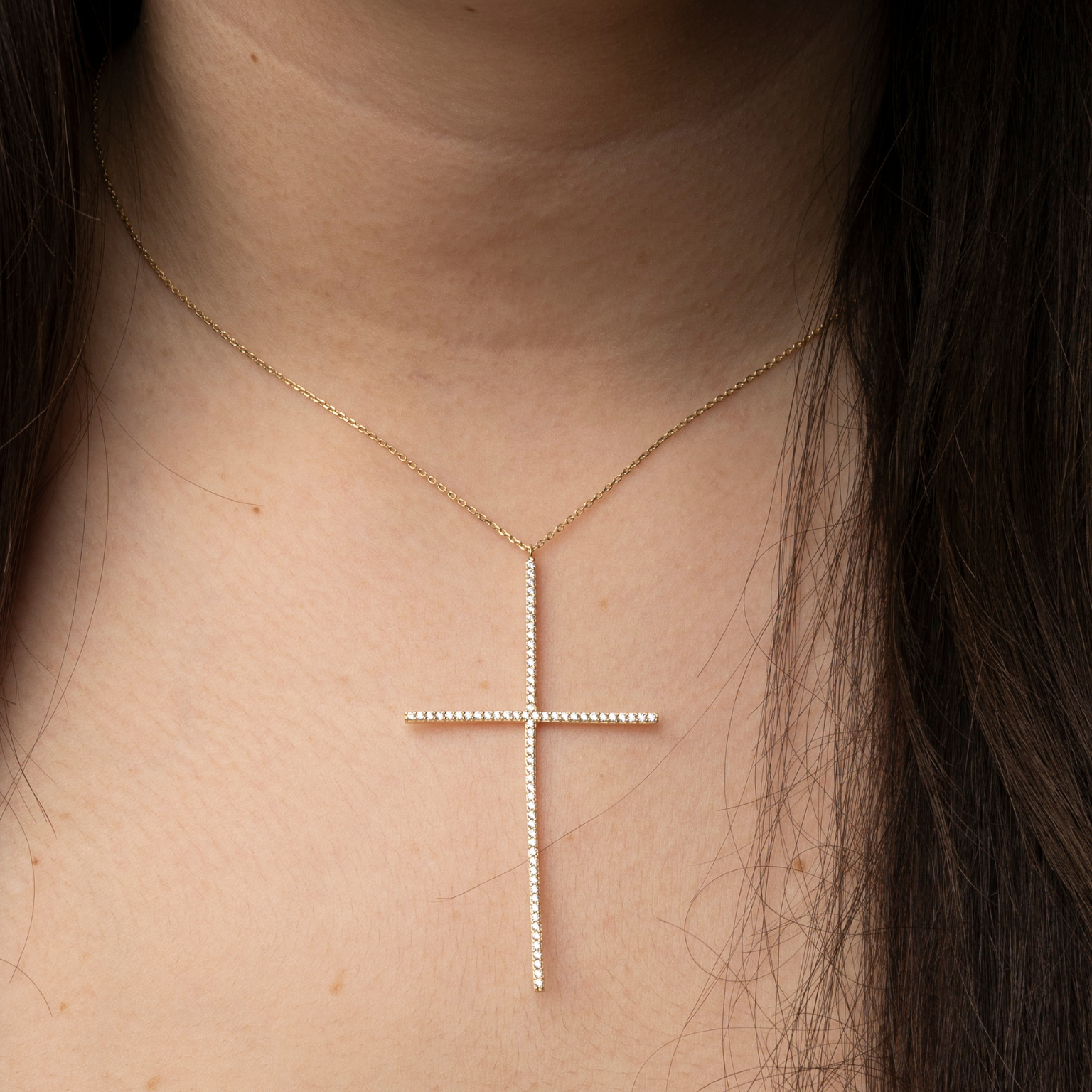 14k Crystal Cross Necklace - Statement of Faith