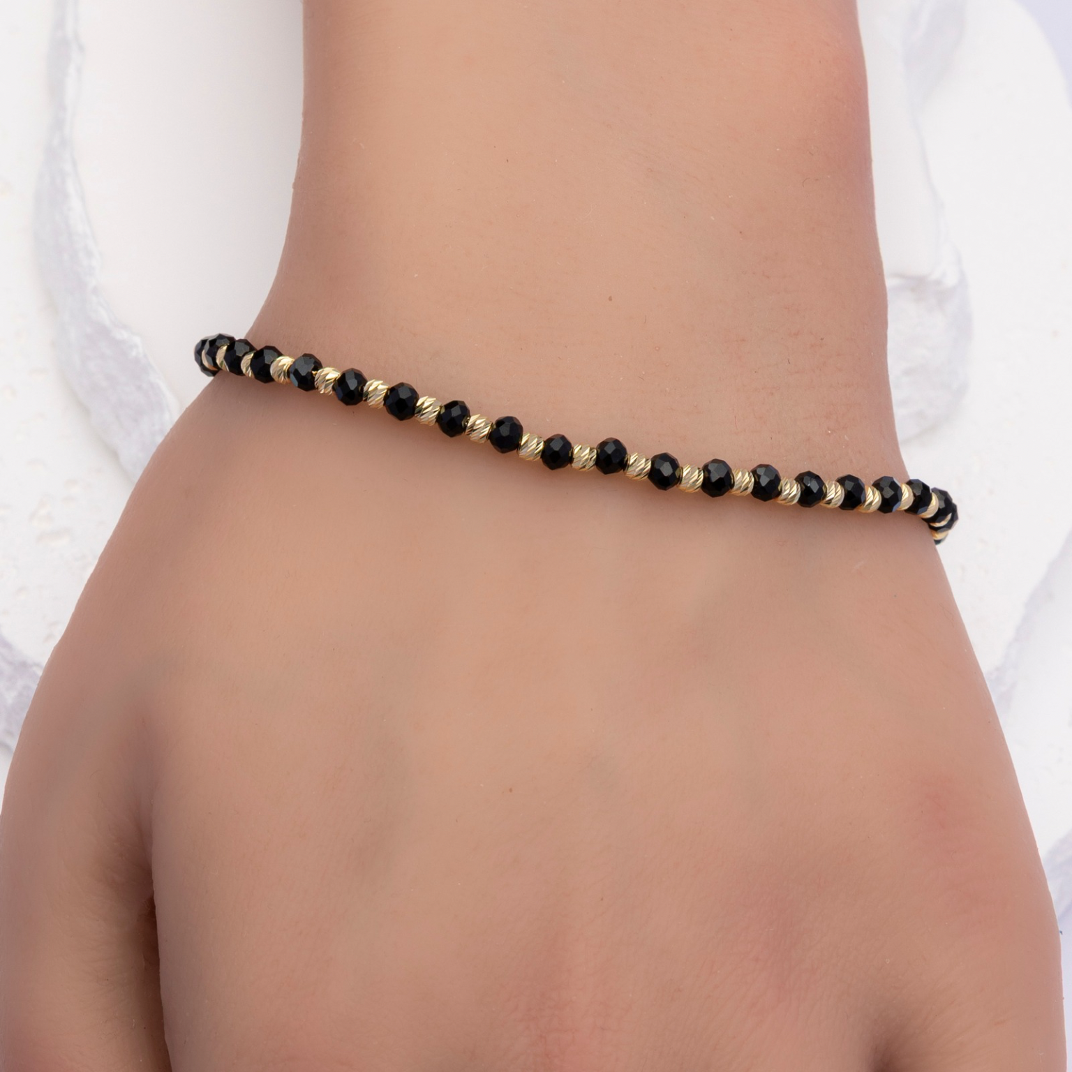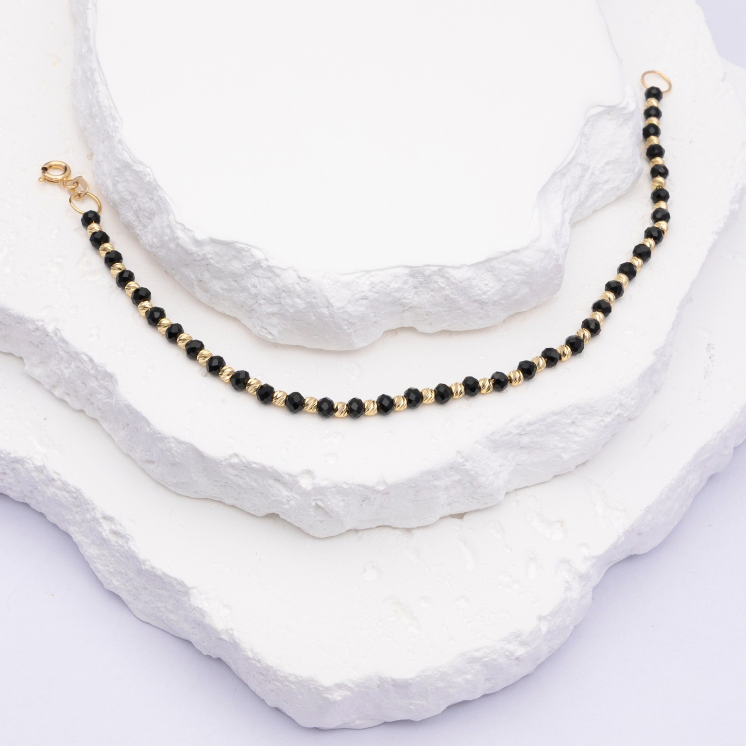 14k Bracelet - Black Stones in Gold