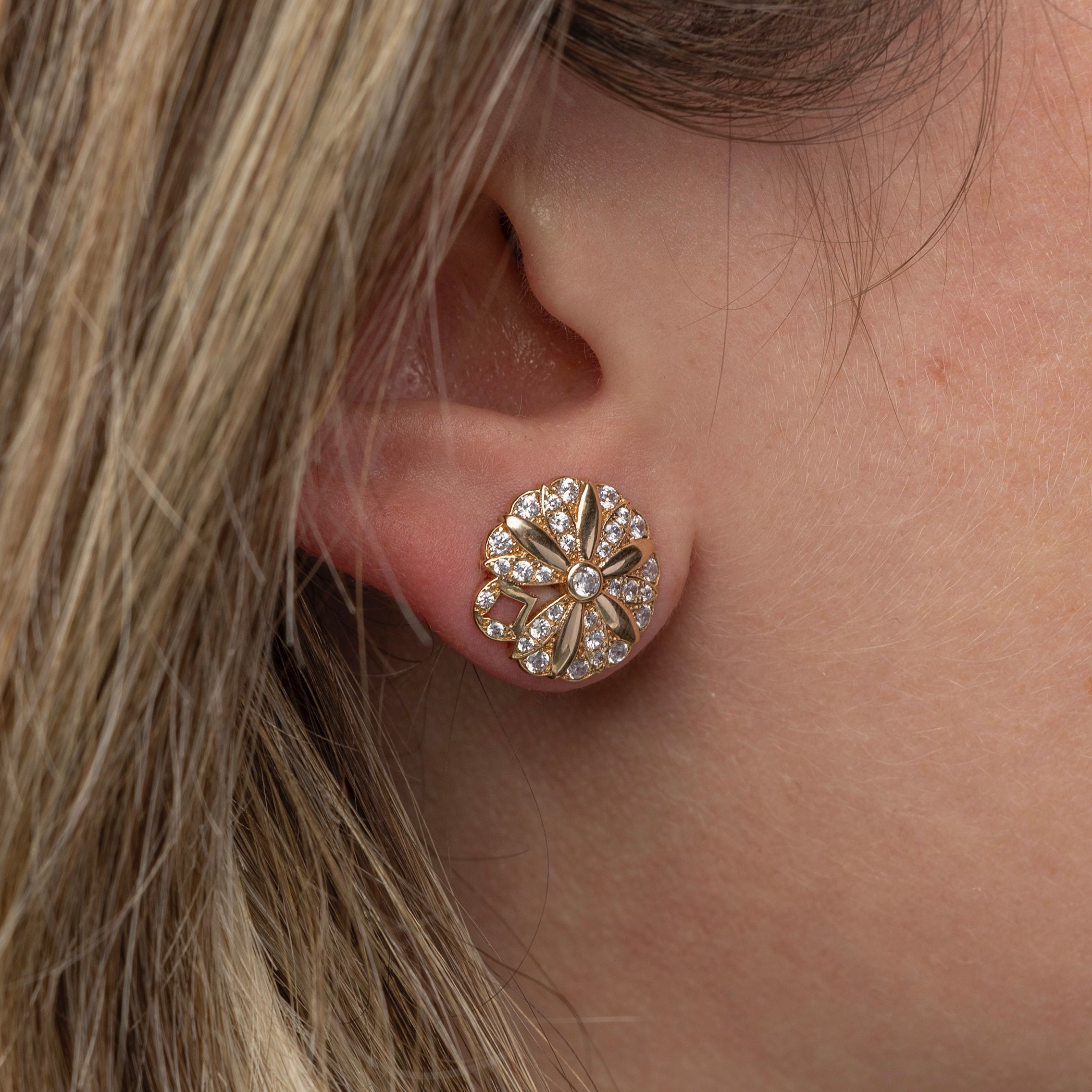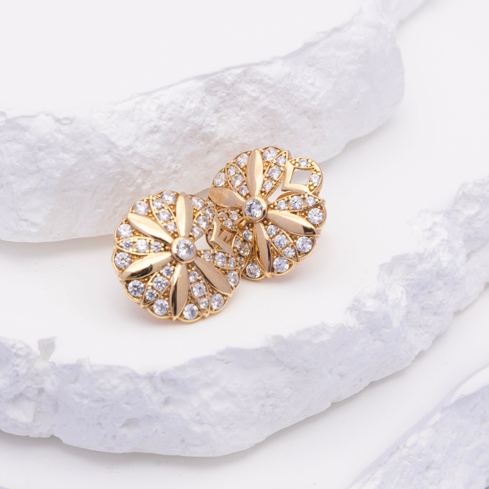 Brillo delicado: aretes de flores de cristal de 14k en oro auténtico