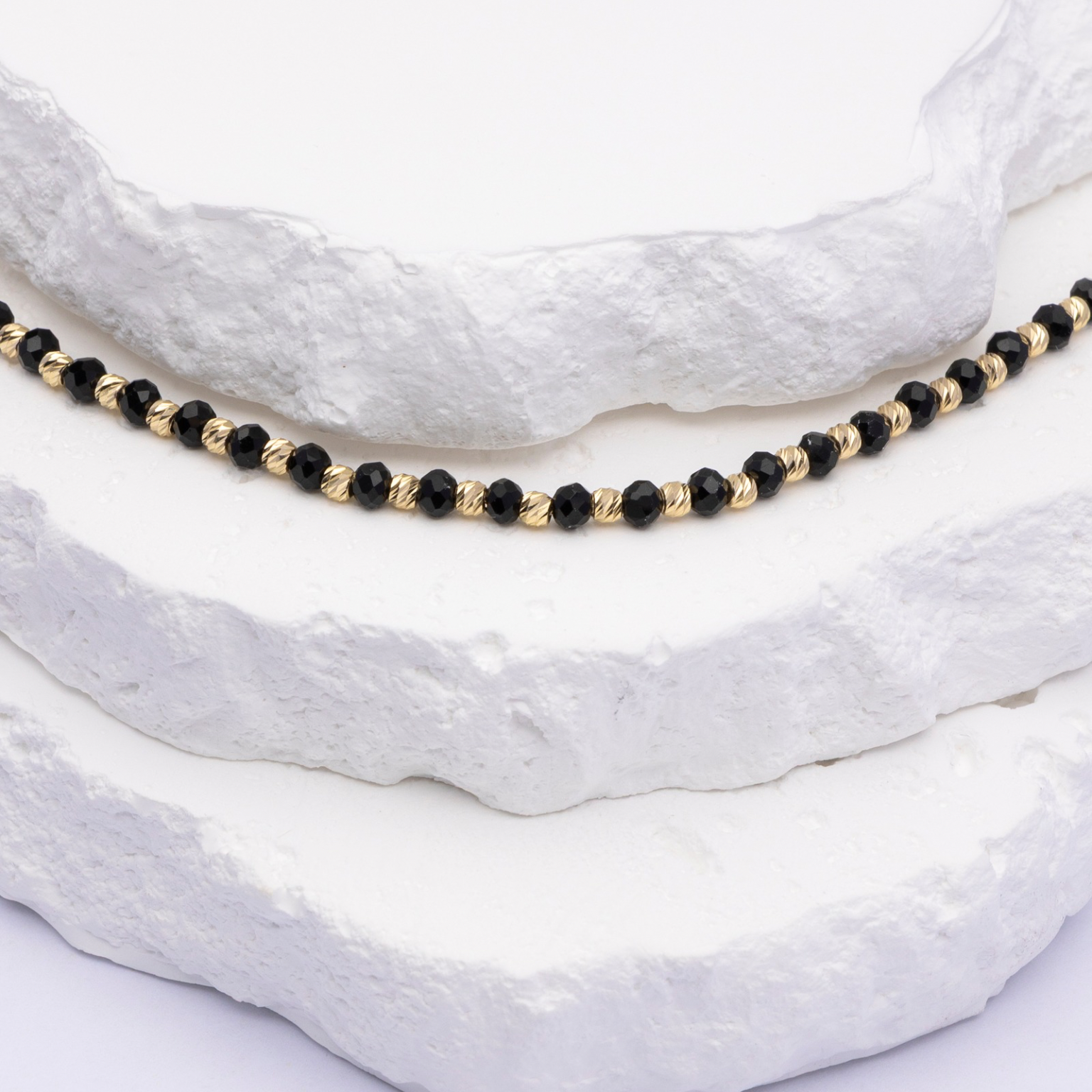 14k Bracelet - Black Stones in Gold